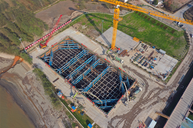 11月16日,由中交二航局承建的世界最大跨度三塔斜拉桥——巢马铁路马鞍山公铁长江大桥主桥首个承台开始浇筑。