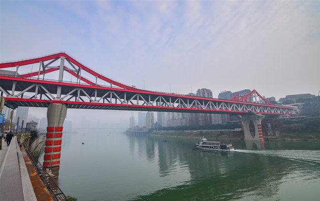 桥通两岸,扮靓山城。12月31日,中交二航局承建的重庆曾家岩嘉陵江大桥建成通车。通车后的曾家岩大桥涂装上一层鲜艳的“中国红”,两个连续上翻的钢梁,犹如一对翅膀,与嘉陵江水交相辉映。