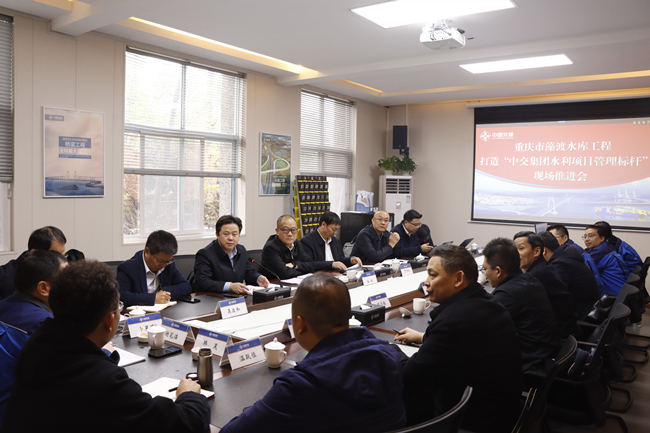 游斌强调,重庆藻渡水库作为中交集团第一个大型水利工程项目,要举全公司之力做好各项支撑保障,围绕标准化打造“平安藻渡”、精细化打造“品质藻渡”、集约化打造“效益藻渡”、数字化打造“数智藻渡”、绿色化打造“绿色藻渡”、规范化打造“廉洁藻渡”,推动高质量项目管理落实落地,全力打造中交集团水利项目管理标杆。
