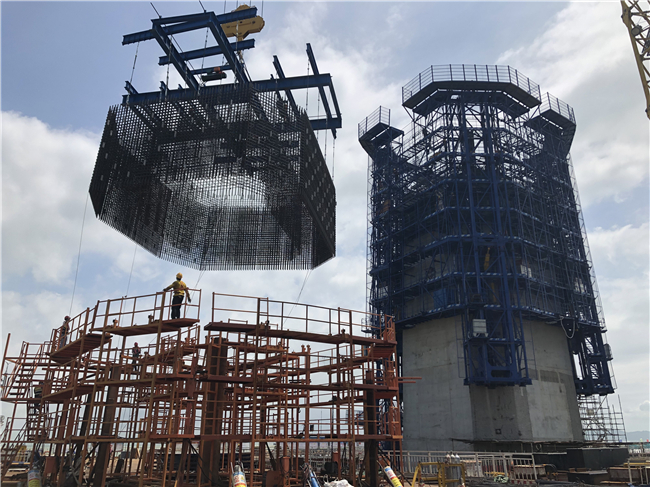 2020年6月28日,一个让团队所有成员既期待又紧张的日子——第一个钢筋部品节段吊装上塔进行对接。