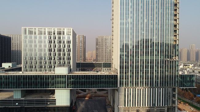 华中·中交城为商务主题综合体,包含5A甲级写字楼、酒店、独栋办公楼、商业区域等。其中5A甲级写字楼属于超限设计,设计高度为180米,比常规设计100米多了80米。但超限设计,并未让华中·中交城的建设者们退缩,反而激发了他们无限的创造力。