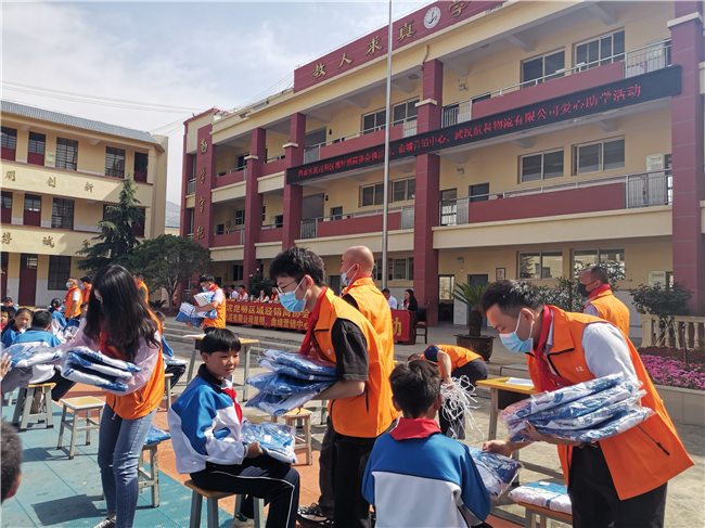 5月28日,航科物流西南事业部与云南西南水泥昆明营销中心、曲靖营销中心及昆明区域经销商协会来到云南会泽县钟屏街道鱼洞小学,共同开展“‘六一’爱心助学”公益活动,航科物流共向该校捐赠校服130余套。