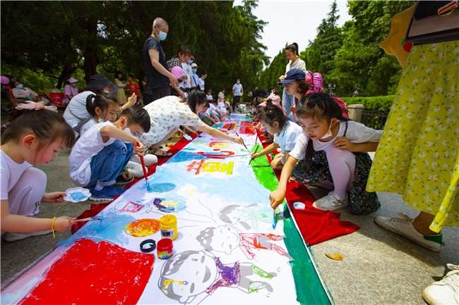 活动现场,小朋友们整齐划一地穿上统一印制的主题T恤,围成同心圆开心地做着小游戏,并在专业老师的指导下有模有样地舞起了“长龙”,在十米长的喷绘上涂抹属于自己心中的色彩。期间,还举行了党建知识竞猜,发放了《少年儿童学党史》读本和六一礼物,让孩子们提前度过了一个轻松愉快的节日。(六分公司)