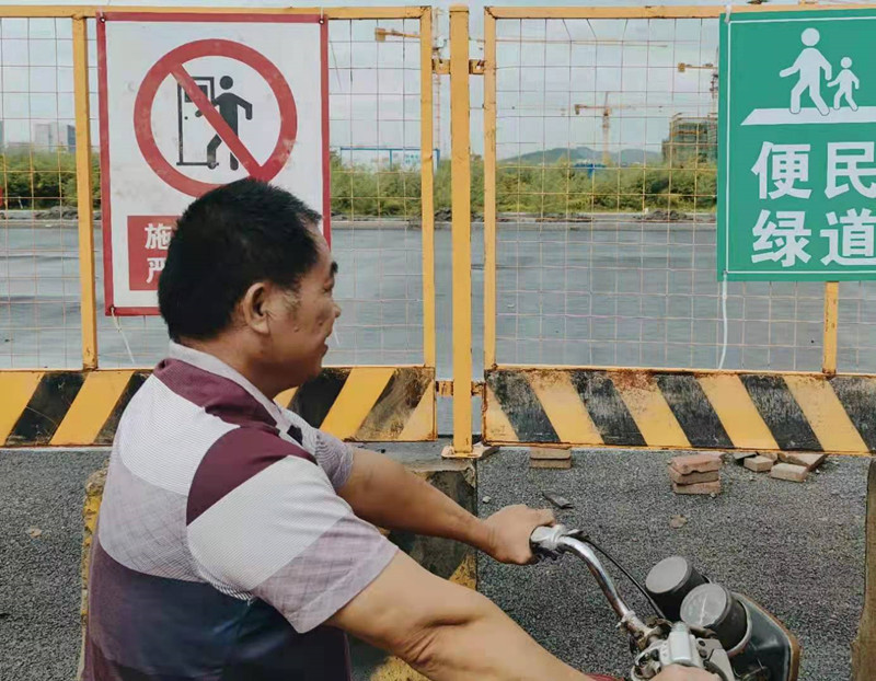 对二航人来说,铺路修桥,让世界更通畅,便民利民,让城乡更宜居,这是央企的责任。而融入当地,与村民交心、连心,为群众办实事、给乡亲解难题,也是二航人的使命与担当。今年6月,项目部听说了老陈一家这件烦心事,专门委派党员同志到老陈家里进行深入了解。解决群众的“急难愁盼”就是大家工作的出发点和立足点。于是,一条仅供老陈一家人使用的长达500米的便民绿道很快就建成了。他们在已经修好的围挡上为老陈一家特地开出一道小门,在保证安全距离的前提下,专门将原有已铺好红色透水砖的人行道让出一部分空间,然后,又用石马、网片等严严实实地围起来,与施工现场分隔开,以此作为老陈一家出入的通道。